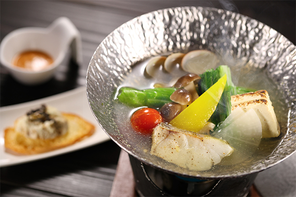 冬の献立鍋 <湯河原町はイタリア・ティヴォリ市と友好親善都市提携> 昆布×かつお×アサリ出汁が隠し味 秋冬の和風イタリアン鍋 <タラ、、アサリ、キャベツ、大根大根、水菜入り> ~「ツナ&昆布」がのったバゲット添え~ お料理に合わせた『ワイン&日本酒ペアリング』もご用意しております。 ※料理画像はイメージです ご宿泊プラン一覧 魅力一覧へ戻る