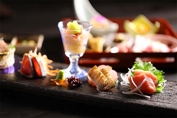 春の献立お造り <すべて地場産! 相模湾&駿河湾産の刺身5種盛り> 桜鯛(駿河湾産)~自家製煎り酒で~ カツオ(相模湾産)~ポン酢で~ イサキのフキ和え(相模湾産)~大根のツマと一緒に~ タチウオの炙り(駿河湾産)~自家製煎り酒で~ クロマグロ(駿河湾沖産)~料理長特製土佐醤油+わさびで~ ポン酢 料理長特製土佐醤油 自家製煎り酒 お料理に合わせた『ワイン&日本酒ペアリング』もご用意しております。 ※料理画像はイメージです ご宿泊プラン一覧 魅力一覧へ戻る